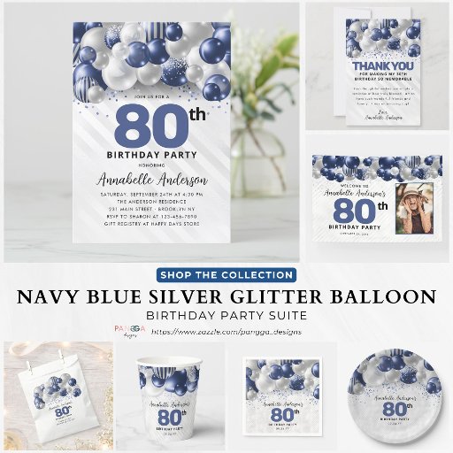 Navy Blue Silver Glitter Balloon 80th Birthday 01Designed by Christine F