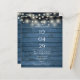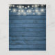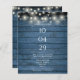 A rustic budget wedding invitation design featuring pretty string lights and your special date and wedding details set in classic, chic typography on a blue rustic wood background. Designed by Thisisnotme©