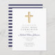 This budget blue stripes religious boy first communion invitation paper sheet is an affordable option that is printed on thinner and smaller paper than the standard invitation card paper. For complete information, please review the 'ABOUT PAPER SHEETS' section on this site. If you're looking for the standard card paper version or matching products, either check out the design collection or visit our Christian stationery store, Guiding Star.