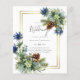 Blue Thistles, Pine cones, Eucalyptus leaves, winter wonderland wedding themed wedding invitation , part of a larger collection which includes invitations save the dates rsvp's bridal party gifts etc. For Christmas or winter wedding planning guide theme ideas and more visit weddingdesignchic.com.