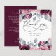 Budget Elegant Modern Botanical Blush Burgundy Floral Wedding Thank You Card