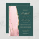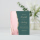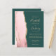 The left-hand edge of this elegant modern wedding invitation features a blush pink watercolor agate border trimmed with faux gold glitter. The customisable text combines pale gold-coloured handwriting, copperplate and italic fonts on an emerald green background. Add additional details on the back, along with a QR code to help your guests visit your wedding website.