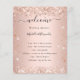 A modern, elegant wedding program, timeline. Blush, rose gold coloured background decorated with faux glitter dust. Personalise and add your names and wedding details. Black coloured letters. If you have more text it's possible to reduce the line space.