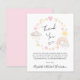 Budget-friendly whimsical boho baby girl shower thank you featuring "Thank You" in a stylish script and pink and yellow watercolors of a rainbow, sun, hearts, stars, moons and clouds.