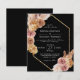 This Budget Boho Chic Desert Floral Wedding Flyer - features floral and golden geometric with dry leaves, twigs and flowers, pampas on the black background. The reverse side of the bridal invitation is also black.