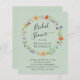 Budget-friendly boho-inspired sage green bridal shower invitation featuring a watercolor wreath of floral wildflowers and "Bridal Shower" in an elegant swash script.