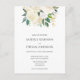 Elegant wedding invitation features an arrangement of white flowers and greenery. Please, it`s a invitation POSTCARD, it does not include envelopes.