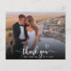 Budget Modern Boho Heart Script (two) 2 Photo Wedding Thank You Paper. Modern Stylish wedding thank you template featuring a full vertical photo on the front with overlay text "Thank You" in a hand lettered calligraphy (typography) swash tail font script with love heart motif in white on the picture. ***PLEASE NOTE! *** BUDGET PAPER/FLYER IS PAPER THIN. *** UPGRADE THE PAPER FOR A THICKER PAPER. *** Add your name and thank you message. If you prefer to handwrite your note, just delete the sample text to make more space. If You need help, please contact designer!