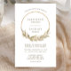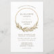 This boho wedding design features the bride and groom's names framed by a gold hoop decorated with watercolor pampas grass. Personalize the light brown text with the couple's names and wedding details. The reverse side is a solid shade of beige.
