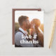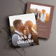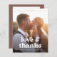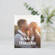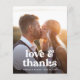 This is a budget friendly bohemian wedding thank you card using a retro vintage style font along with a modern and simple photo design, printed on a paper sheet.