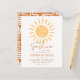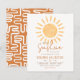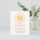 Our little ray of sunshine is on the way! This boho and budget design displays a watercolor sun illustration filling the top of the card with the event details below in chic typography. The mum-to-be's name, "sunshine", the date, and the registry information are all written in a rust orange colour with the rest of the text in a warm brown tone. The back of the card features the same terracotta orange colour with an abstract pattern of organic brush strokes. This bohemian design with a happy yellow and orange colour scheme is perfect for both boy and girl baby showers. Sun-themed gender-neutral baby shower invitations for spring or summer events. Matching themes include "here comes the sun", "you are my sunshine", "ray of sunshine", and rainbow baby showers. This invitation template is editable online: click on "Personalise this template" and type your text into the boxes provided. For more advanced changes scroll to "click to customise further" and access Zazzle's Design tool to choose custom colours, change fonts, edit placement, and more! As part of the budget selection on Zazzle, this sheet isn't a standard invite size or paper quality. If you want this design on an invitation card you can find it in our store or use the Zazzle Make Machine to transfer it onto the product of your choice. Please note the cards are printed as you see them on your screen when ordering, so be sure to double-check for typos! Other invitation options are available in the collection on this page below the product image. Browse my store for more sunshine baby shower invitations.