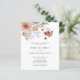 Budget Boho Terracotta and Pink Floral Autumn Wedding Invitation... Our Bohemian style fall floral wedding invitation features watercolor dahlias, cosmos, and roses in shades of terracotta and pink above modern calligraphy script combined with classic serif typography for a romantic late summer or fall wedding theme. The back of the invitation displays your wedding website QR code as well as the website's URL allowing your invitees to easily RSVP online and view all of the details normally sent in a wedding packet. There is also an email RSVP option on the template for invitees who aren't familiar with QR codes. The example QR code and all example text (aside from the calligraphy elements) can be easily revised with your own information on the personalisation template.