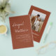 Budget Personalise this Boho Simple Elegant Terracotta Burnt Orange and White Stylish Invitation with your message and details with a elegant photo on the back. This minimalist invitation includes stylish handwritten script typography with a modern colour for the special Wedding day celebration.