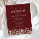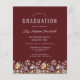 A beautiful watercolor floral border of wildflowers decorates the bottom edge of this trendy boho graduation party invitation. Customise the white text on a burgundy red background with the graduate's name in handwriting script; the school and class year in sans serif; and the date, venue, and RSVP details in serif font. The back of the card is solid burgundy.