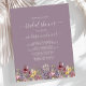 This elegant boho floral design features a border of watercolor wildflowers on a mauve background. The words "bridal shower" and the name of the bride-to-be appear in white calligraphy script with decorative swashes at the beginning and end, with the remaining text in serif font. A coordinating wildflower pattern decorates the back of the invitation. (To keep the swashes, replace only the letters of the bride-to-be's name, leaving the symbols in place.)