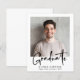 Budget-friendly modern graduation announcement featuring your photo and "Graduate" in a stylish bold script. Add the grad's name, school and class year in simple typography.