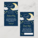 Theme Parties Twinkle Twinkle Baby Sprinkle budget baby shower enclosure card design features Books for Baby on one side and Diaper Raffle information and entry card on the other. The design features watercolor design elements including a watercolor moon floating among pretty watercolor clouds and modern script typography paired with traditional block lettering. Watercolor stars accent the design which is set on a navy blue background. #BabyShower #GenderNeutral #BooksForBaby #DiaperRaffle