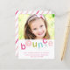 A modern kids birthday party invitation with colourful bounce typography and personalised age and photo. Click the edit button to customise this design.