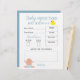 Budget game of baby predictions and advice for the parents. Paper sheets with a quiz your guests can play. Design in blue and white for a boy's baby shower with cute illustrations. Personalise it or change the font, colours, and wording by clicking the button to edit the design.