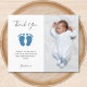 This budget Boy's Baby Shower Thank You Card is decorated with elegant script typography and cute blue glitter baby's feet.