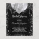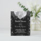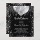A stylish black background. Decorated with faux silver glitter and balloons. Personalise and add a name, party details. The name is written with a hand lettered style script