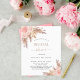 For a modern boho style bridal shower. A stylish white background. Decorated with rose gold and pink florals, roses and pampas grass. Personalize and add a name and party details.