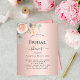 A rose gold background. Decorated with a rose gold and blush pink floral, rose flower and green watercolored eucalyptus leaves, sprigs, greenery and a faux gold sprig. Personalise and add the name of the bride to be and party details.