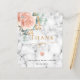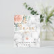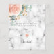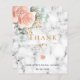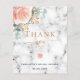 A modern and elegant bridal shower thank you card. Marble stone print as background. Decorated with a rose gold and blush pink roses, florals flowres and green watercolored eucalyptus leaves, sprigs, greenery and faux gold sprigs. Black and golden letters. On the front the text: Thank You, name, and a date.