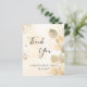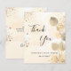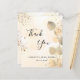 A Bridal Shower thank you card. A golden watercolored background decorated with golden eucalyptus and faux gold glitter dust. On front large black coloured hand lettered script and the text: Thank You, your text, title and a date.
