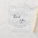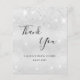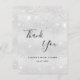 A Bridal Shower thank you card. A faux silver metallic looking background color. With faux glitter dust. On front, a large hand lettered script and the text: Thank You, your text, title and a date.