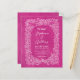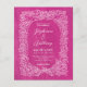 A pretty border lends a romantic touch to a simple textured bright pink and white colour theme. The hand drawn border is filled with wild rose flowers, leaves, butterflies, entwined branches and ribbons and two little birds. This look would be nice for a nature-inspired wedding any time of year. Whimsical, unique artwork & design by Tuzi Williams.