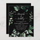 Budget Brunch and Bubbly Champagne Black Greenery Botanical Watercolor Spring Wedding Bridal Shower Invitations on white background - includes beautiful and elegant script typography with modern botanical leaves and greenery for the special Bride to Be celebration.