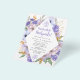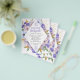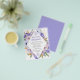 Elegant purple and blue flowers create a diamond-shaped frame to surround your post-wedding brunch details.