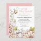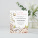 A budget price smaller 4.5" x 5.6" paper alternative. Please note, envelopes are not included. For times when you can’t gather together in person, an online virtual party is the next best thing! This design has a cute bumblebee at the top and large florals in blush and white bordering the left side and bottom edges. The main header Virtual Baby Shower is in a fixed artsy style in baby pink and the same shade of pink is also on the other side. The rest of the text you can easily personalise to your own details. You can also change text colours if you wish via the Click to Customise Further option as well as the background colours on either side via the customise further option.