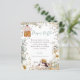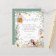 Bunny Boy Clothes Diaper Raffle Baby Shower. A budget friendly SMALLER 4.5” x 5.6” alternative. Available in a SEMI GLOSS 110 lb CARD STOCK or a SATIN FINISH 80 lb THINNER PAPER STOCK. Envelopes are an optional extra. This vintage style design has a cute bunny in a hat peaking from behind florals and foliage and a baby boy's outfit hanging from the branch of a tree, on a background of cream. You can easily personalise all the text to your own requirements. A coordinating coloured background is on the back.