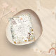 There are two paper options to choose from for this size (4.5 x 5.6”) in the Budget range. For this product, I would recommend the semi-gloss which is a 110 gsm card stock, similar in thickness to a postcard. The Satin option is a much thinner paper 80gsm. The default is set to semi-gloss. PLEASE NOTE there is ONE per sheet. Budget Bunny Dress Baby Shower Cream Invitation. This vintage style design has a cute bunny peaking from behind florals and foliage to the bottom right, and a sweet baby girl's outfit hanging from the branch of the tree at the top on a background of cream. You can easily personalise all the text to your own requirements. A coordinating coloured background is on the back.