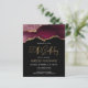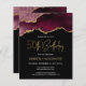 This trendy 50th birthday invitation features a watercolor image of an agate geode in shades of burgundy with faux gold highlights. The words "50th Birthday" appear in faux gold glitter in decorative modern handwriting font. Customise it with the name of the honoree in gold coloured text and the details in white. The same burgundy agate image appears on the reverse side.