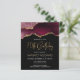 This trendy 70th birthday invitation features a watercolor image of an agate geode in shades of burgundy with faux gold highlights. The words "70th Birthday" appear in faux gold glitter in decorative modern handwriting font. Customise it with the name of the honoree in gold coloured text and the details in white. The same burgundy agate image appears on the reverse side.