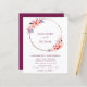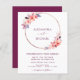 Budget Peach, Plum, Orange, Burgundy and Purple Botanical Watercolor Geometric Rose Gold Circle Frame Spring Wedding Invitations on Purple background - includes beautiful and elegant script typography with modern botanical leaves and greenery for the special Wedding day celebration.