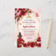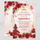 Modern Burgundy Maroon Red Gold Glitter Sparkle Floral Rose Butterfly Princess Tiara Crown Quinceañera Birthday Invitation