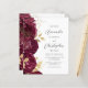 The left-hand edge of this elegant wedding invitation features a burgundy floral border trimmed with gold faux foil and glitter leaves. The customisable text combines charcoal grey vintage-inspired script and sans serif fonts on a white background. The reverse side features a matching floral design.