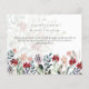 Featured here are pretty watercolor wild flowers in colours burgundy, blue andsage green leaves. The text is overlayed across the design which is opaque behind the text.