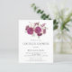 A budget price SMALLER 4.5” x 5.6” alternative. Available in a SEMI-GLOSS 110 lb CARD STOCK which is the default option (thicker for invitations), OR a SATIN FINISH 80 lb THINNER PAPER STOCK (ideal for enclosures). Envelopes are an optional extra and are slightly larger than the card size. Elegant style for your couple's shower, with a bouquet of beautiful burgundy and white watercolor florals above elegant typography which is easily personalised to your details. A coordinating rose pink background is on the back which can be changed to a different colour if you wish via the Customise Further option.
