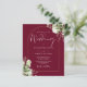 This budget elegant botanical greenery leaves wedding invitation can be personalised with your information in chic typography with your monogram initials on the reverse on a burgundy background. Designed by Thisisnotme©