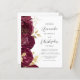 Budget Burgundy Gold Floral QR Code Wedding Invite