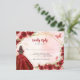 Modern Burgundy Maroon Red Glitter Sparkle Floral Rose Butterfly Princess Tiara Crown Quinceañera Birthday QR Code RSVP Response Card