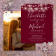 Featuring pretty string lights and signature style names. This elegant budget burgundy wedding invitation can be personalised with your wedding details in chic lettering and special photo on the reverse. Designed by Thisisnotme©