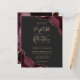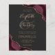 A burgundy red watercolor agate design trimmed with faux gold glitter appears in two corners of this elegant design. Personalise it with the couple's names in gold-coloured handwriting script over a large grey ampersand. Add the wedding details in gold-coloured copperplate and italic fonts on a slate black background. The reverse side features a matching burgundy and gold agate design. NOTE: Envelopes are not automatically included with these budget invitations, so please remember to choose the "white envelopes" option!