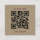 This elegant modern wedding website RSVP enclosure card features burgundy text on a gold-coloured background. The title appears in beautiful handwriting script, with customisable text below in sans serif font. Enter your wedding website URL to generate a QR code on the reverse side, framed by the words "scan me to RSVP."