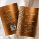 The left-hand edge of this elegant modern wedding invitation features a burnt orange faux glitter border. The customisable text combines white handwriting, copperplate and italic fonts on a burnt orange faux brushed metal background. The reverse side provides space for wedding details on a burnt orange brushed metal background, along with a QR code guests can scan to visit your website and RSVP, which saves the cost of printing and mailing separate RSVP cards.